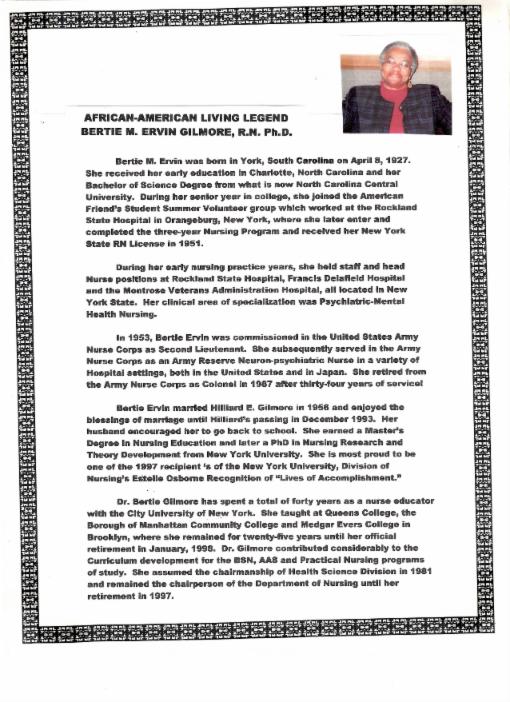 HONORING BERTIE M. ERVIN GILMORE, RN, Ph.D.,